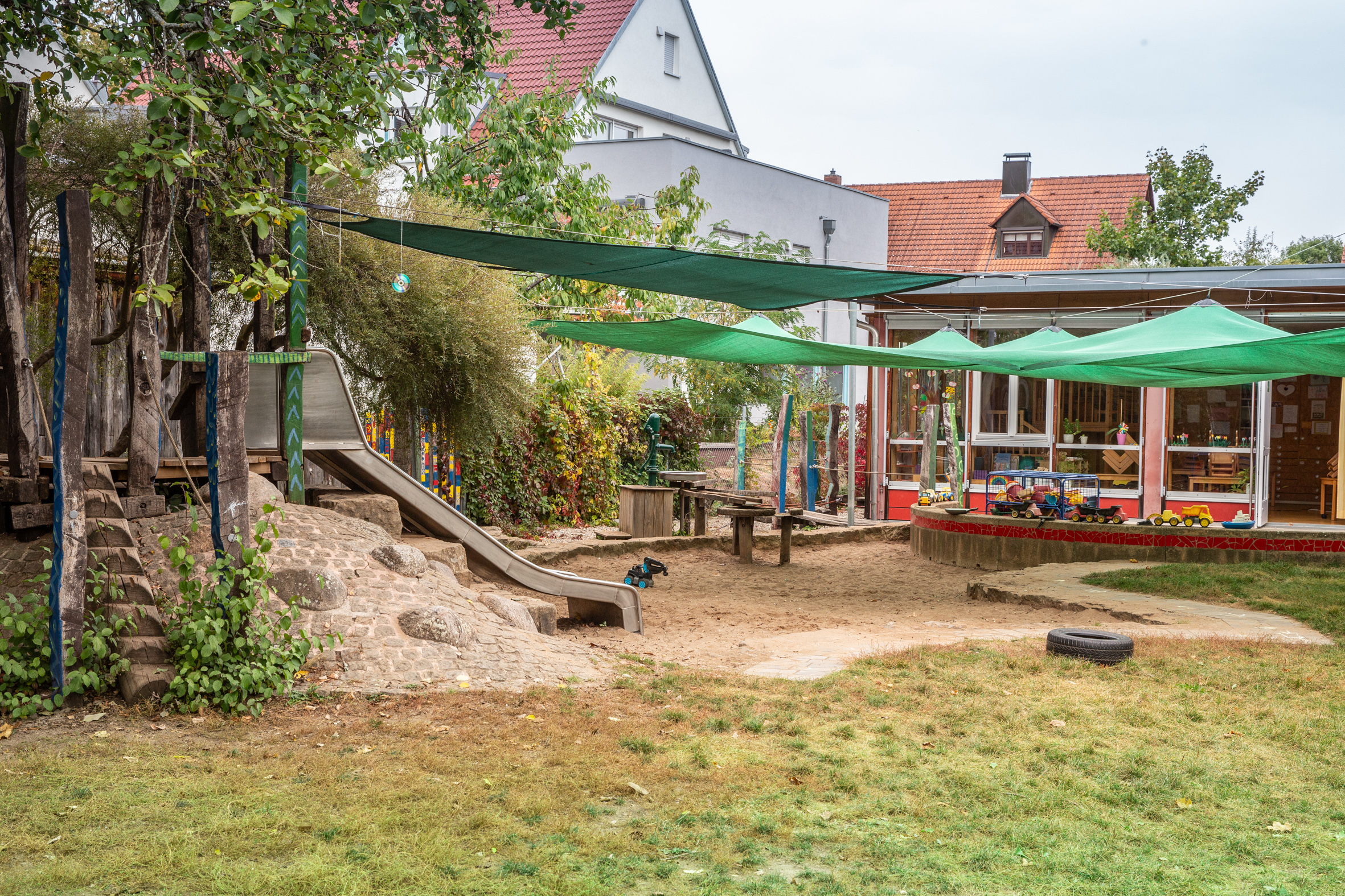 Der dreigruppige Kindergarten liegt am Rande des Stadtteiles Zerzabelshof in einem verkehrsberuhigten Neubaugebiet. In der Einrichtung werden 75 Kinder im Alter von drei Jahren bis zum Schuleintritt von sieben pädagogischen Fachkräften betreut, gebildet und gefördert. Durch unsere zentrale Lage können wir viele kulturelle und Freizeitangebote nutzen.